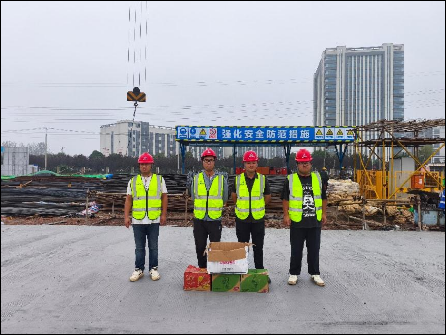 期間,項(xiàng)目部在嚴(yán)格落實(shí)方案到位、措施到位、監(jiān)管到位,確保節(jié)日安全生產(chǎn)工作的同時。為讓一線工友感受到企業(yè)的溫暖,10月6日中秋佳節(jié)當(dāng)天,項(xiàng)目部領(lǐng)導(dǎo)班子成員深入施工一線、各作業(yè)點(diǎn)位,看望慰問節(jié)日期間奮戰(zhàn)一線的項(xiàng)目管理人員、農(nóng)民工,送去精心準(zhǔn)備的月餅,送上節(jié)日溫暖和祝福,對他們的堅(jiān)守及付出表達(dá)了最誠摯的感謝。