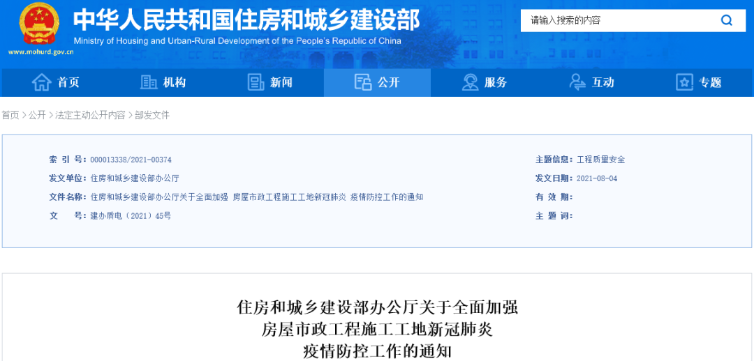 為堅(jiān)決貫徹落實(shí)黨中央、國(guó)務(wù)院關(guān)于新冠肺炎疫情防控的部署要求,持續(xù)深入做好房屋市政工程施工工地(以下簡(jiǎn)稱“施工工地”)疫情防控工作,切實(shí)保障建筑施工領(lǐng)域從業(yè)人員身體健康和生命安全,住房和城鄉(xiāng)建設(shè)部辦公廳日前印發(fā)通知,要求全面加強(qiáng)施工工地疫情防控工作。